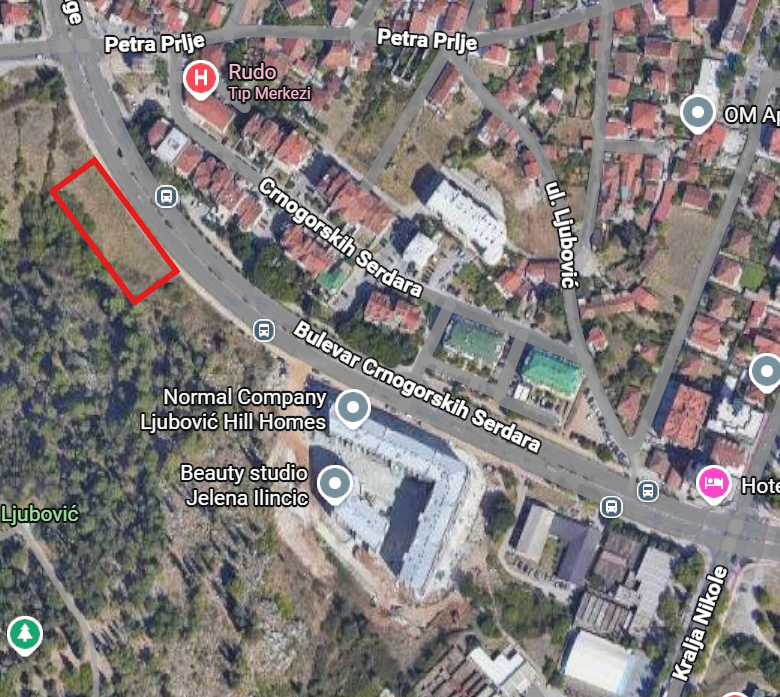 1,600 m² land in an excellent position in Podgorica, first line to the main road and directly next to Ljubović hill.