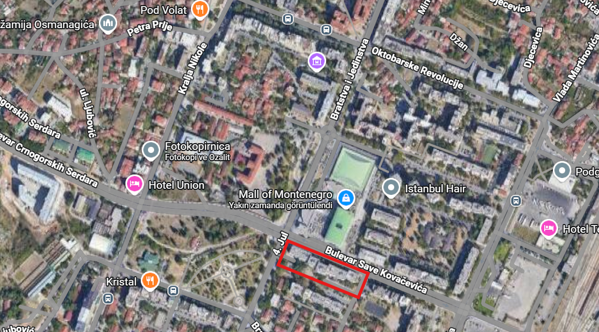 Location: central Podgorica, directly facing Mall of Montenegro and Hotel Ramada