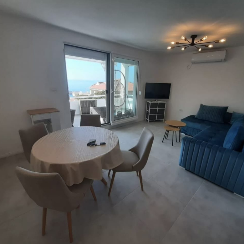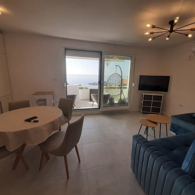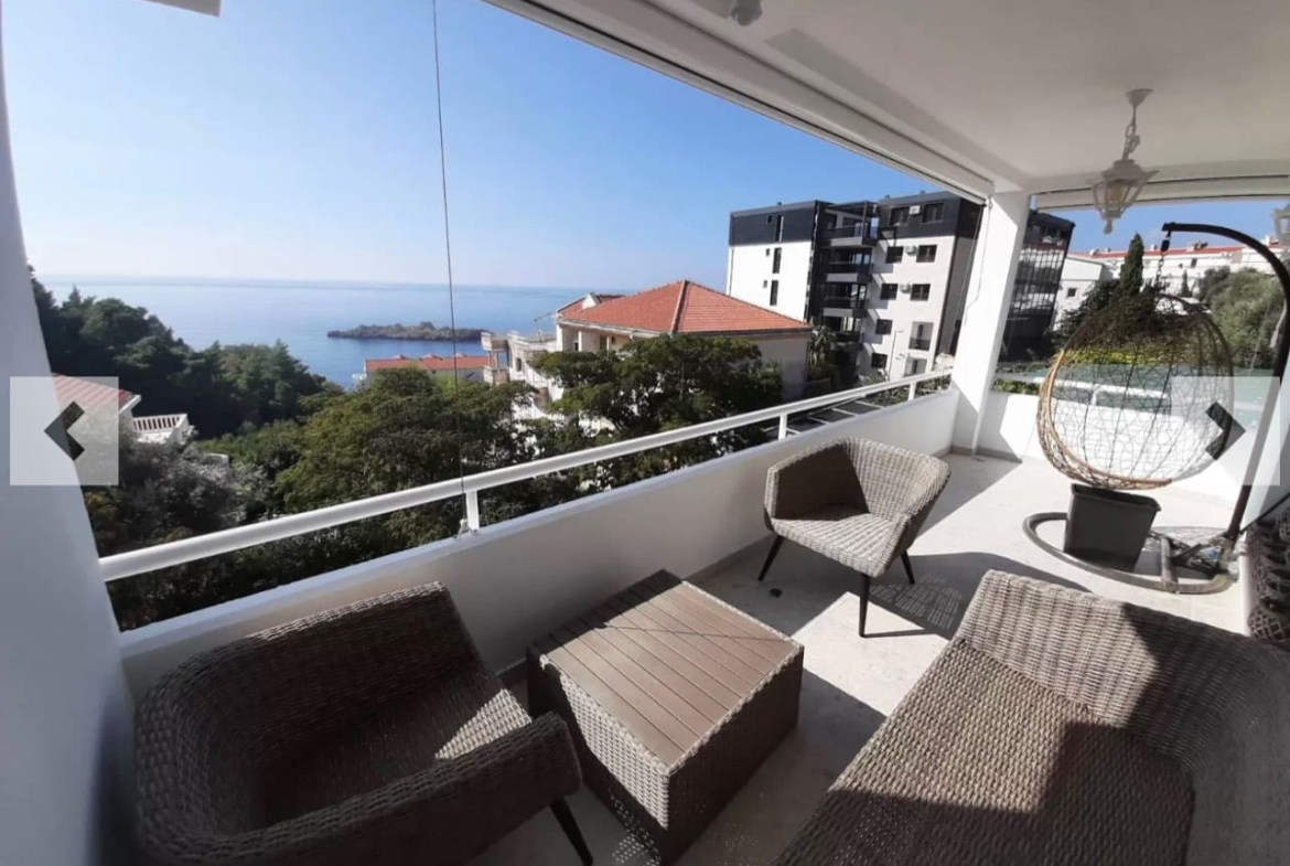 A fully furnished apartment is for sale in Sveti Stefan, offering a beautiful open sea view. The apartment has a living area of 43 m² and a 12 m² terrace, ideal for enjoying the sea view and outdoor living.