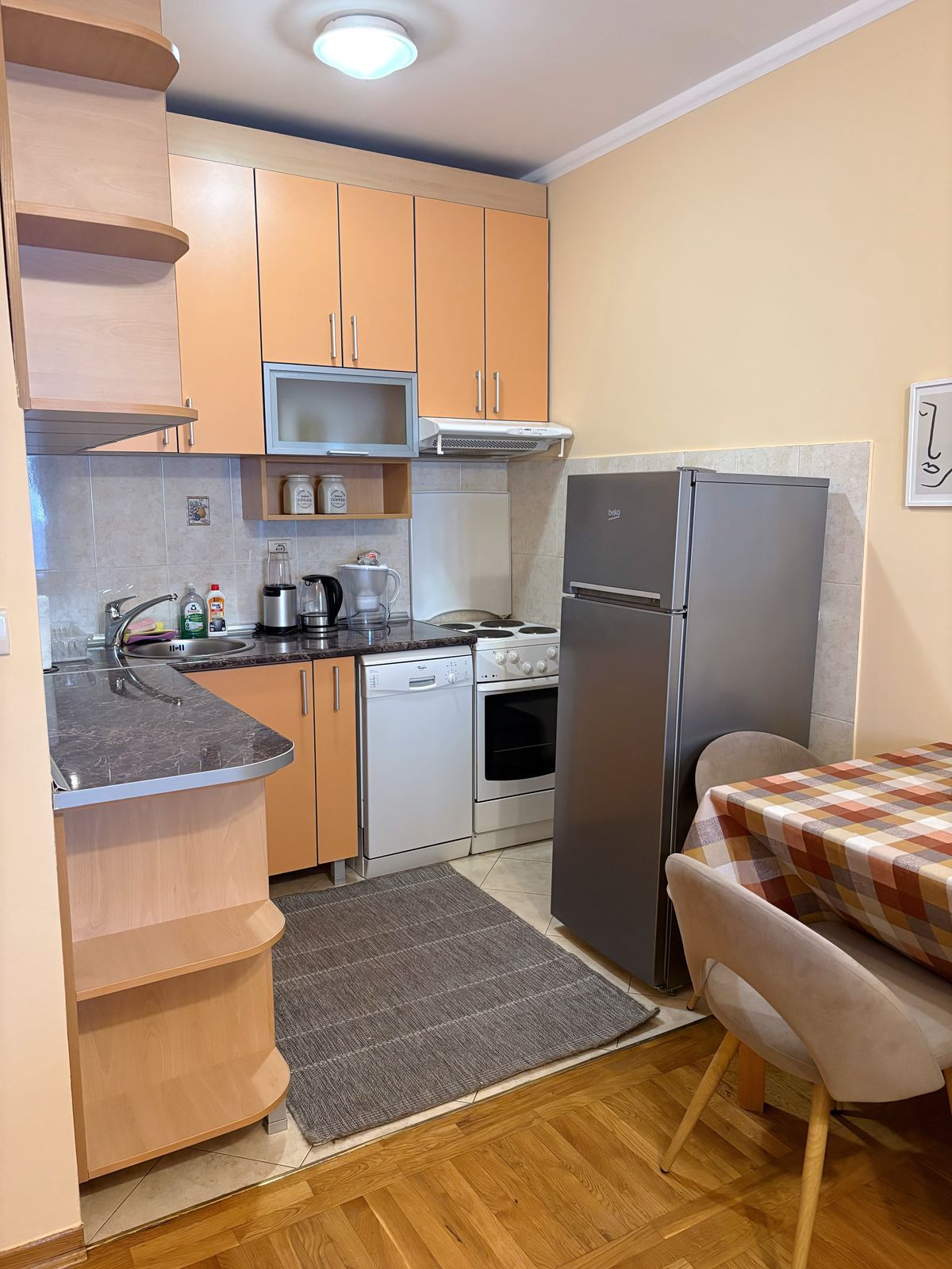 A fully furnished one-bedroom apartment of 47m² is for rent in one of the most attractive locations in Podgorica, behind the Maša restaurant. The apartment is located on the 4th floor (not the top floor) in a building with an elevator. The building has regular maintenance handled by an agency. The apartment is equipped with 2 inverter air conditioners in the bedroom and living room, plasma TVs also in the bedroom and living room, cable TV, and internet via EON Box. There is public parking in front of the building. The apartment has been fully repainted and furnished. The building is by Zetagradnja.