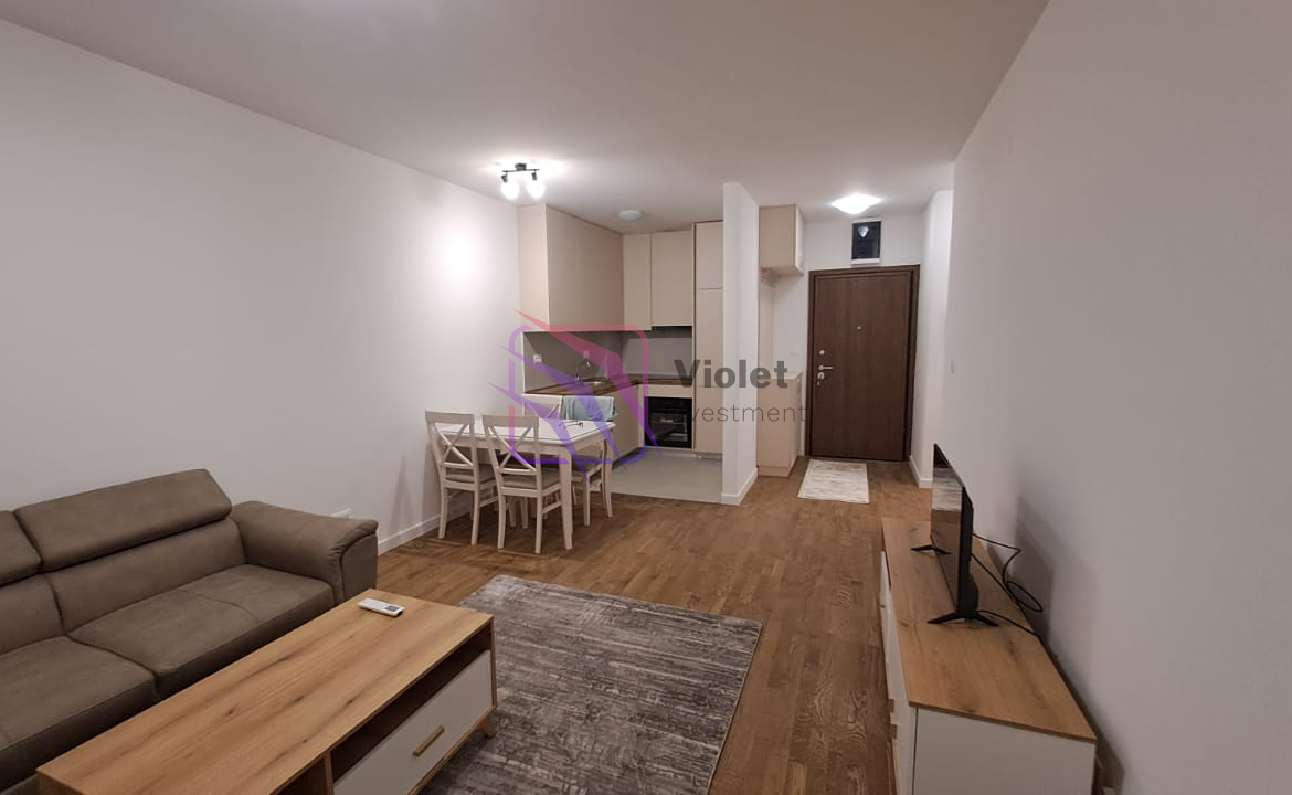 A fully furnished one-bedroom apartment is available for rent in Stari Aerodrom, in the Venture building, near the Health Center.