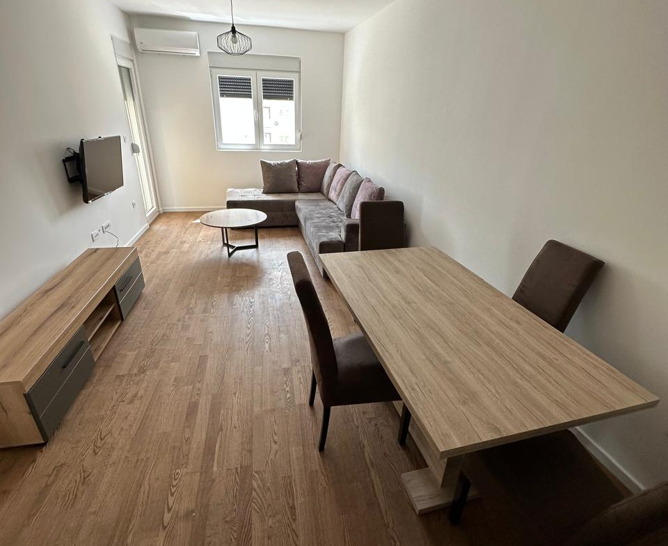 This beautifully furnished one-bedroom apartment is located in the quiet and well-connected neighborhood of Pobrežje, just minutes from the city center of Podgorica. With a total area of 44m², it offers a perfect balance of comfort, functionality, and modern design.