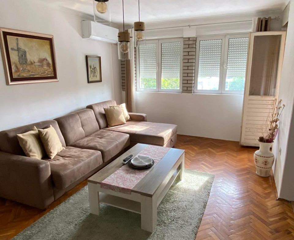 A bright and spacious two-bedroom apartment for rent in the central part of Zabjelo, located in the “Devet Jugovića” building. The apartment is situated on the 4th floor of a 5-story building with an elevator.