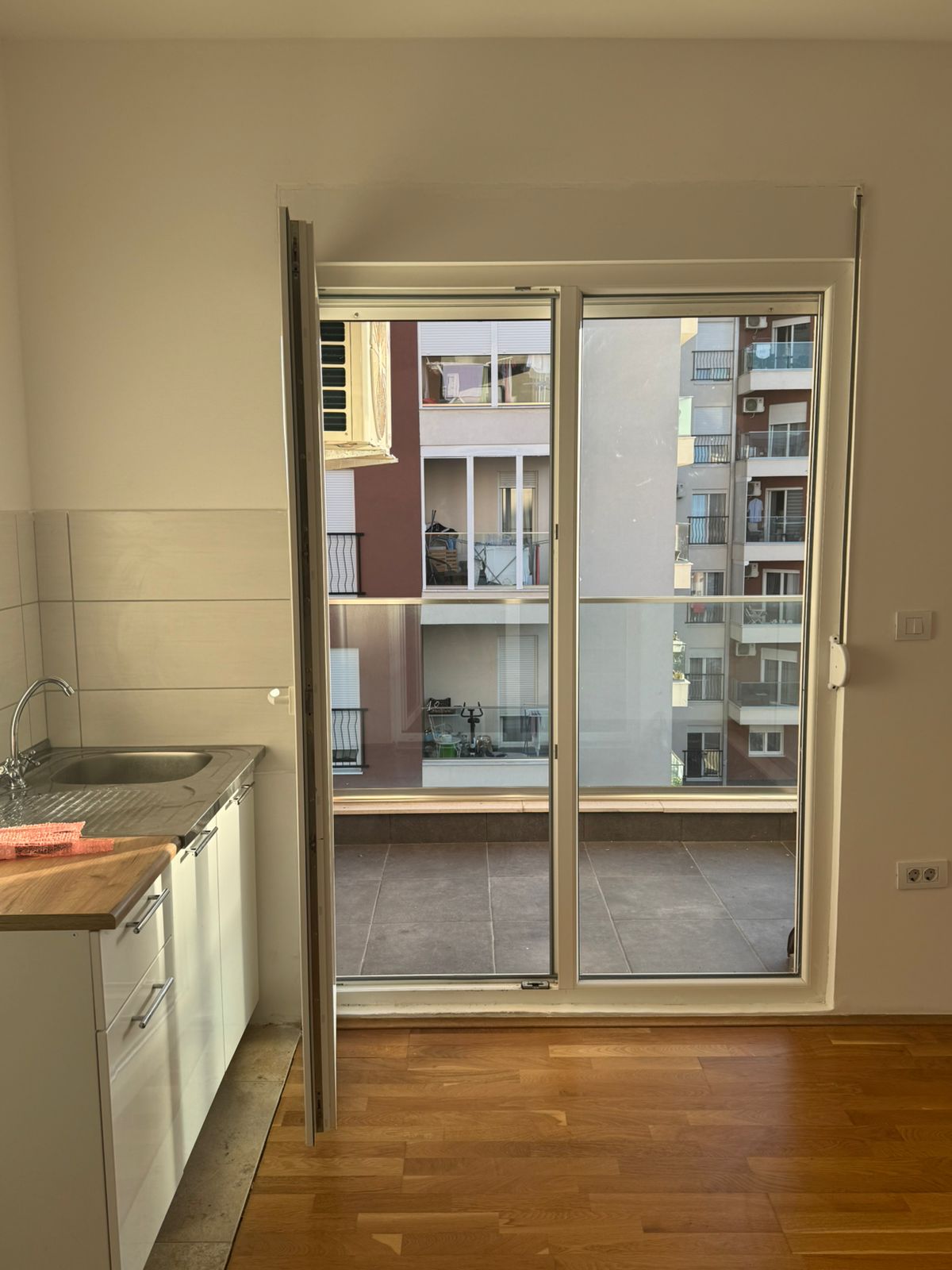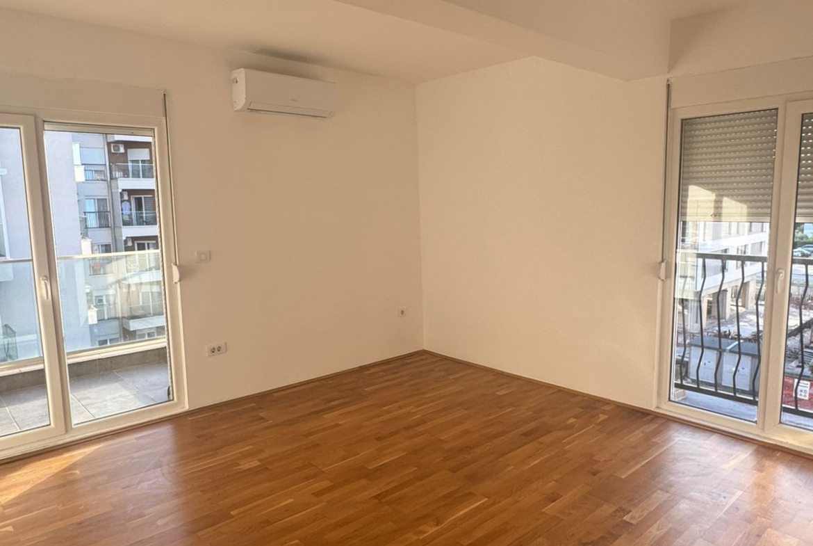 In the Podgorica neighborhood of Stari Aerodrom, near the Football Association of Montenegro, a 62 m² apartment is available for long-term rent, located on the third floor of a newly constructed building.
