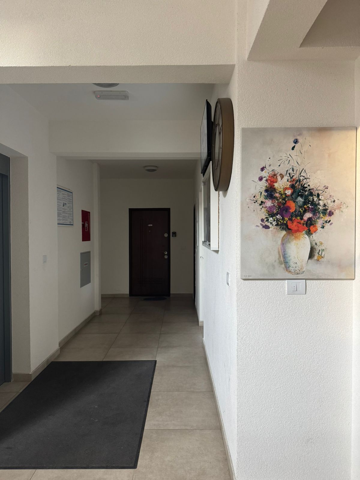 The floors are covered with parquet. The building has two elevators and a private parking ramp for residents; the apartment comes with its own parking space.